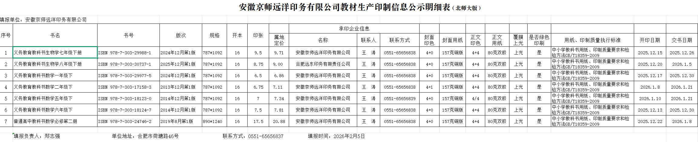 2、2026春_合肥遠(yuǎn)東印務(wù)公司印制教材公示(北師大版)